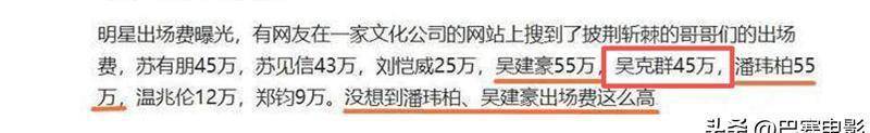 之后,吴克群又回到自己比较熟悉的唱片圈,面对“挣钱”的质疑,频频亮相各种综艺节目。不过因为“人气下滑”,他的出场费也比以前低了不少。