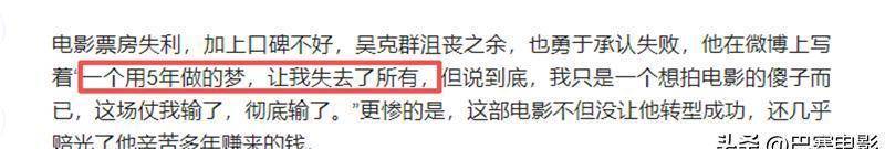 以前那些年,吴克群曾经搞过潮牌,还投资过夜店,据说还投过录音棚,但收获都不算太好。而让他赔得最多的,反而是那部电影《为你写诗》。