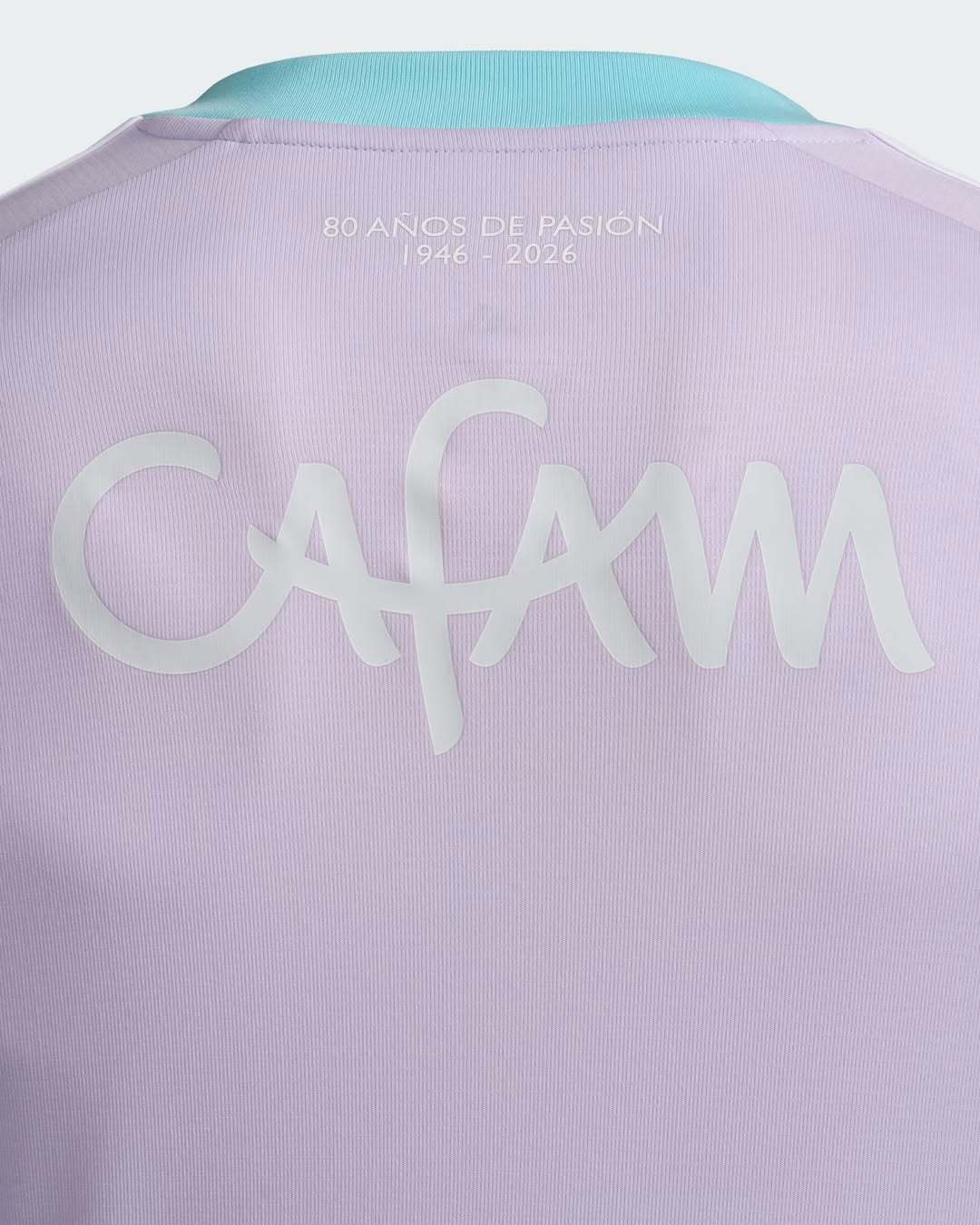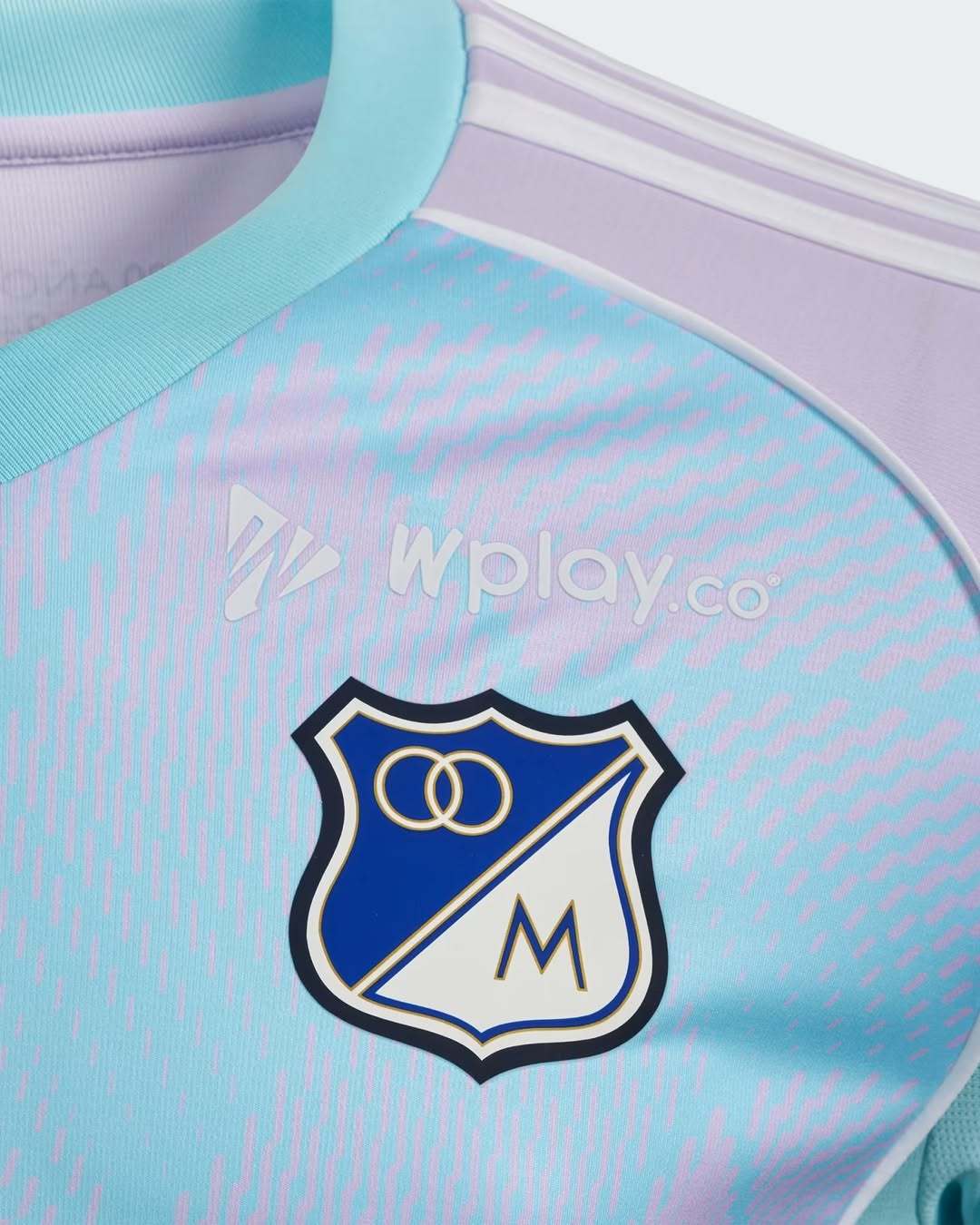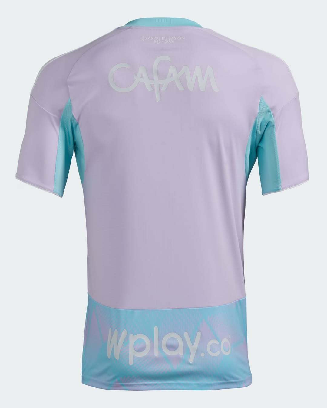 球衣后领下方印有纪念铭文“80 Años de Pasión 1946-2026”,以此纪念俱乐部成立80周年。球衣采用轻盈的阿迪达斯高性能面料制成,旨在提升比赛和训练中的透气性和舒适度。这款全新的百万富翁足球俱乐部球衣搭配同款短裤和球袜,组成一套完整的哥伦比亚2026赛季第二套球衣。
