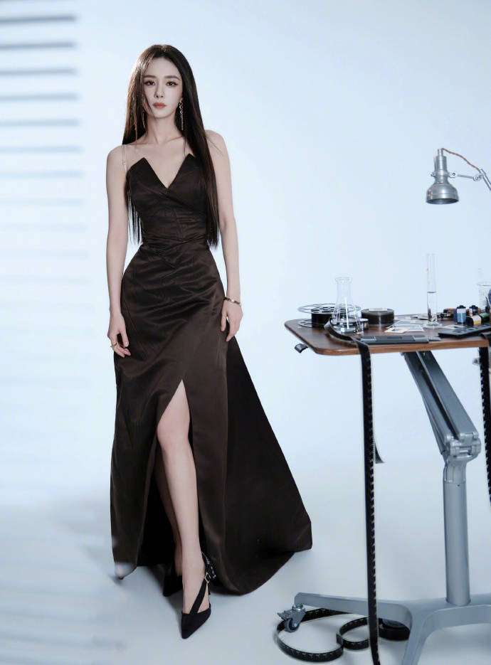 杨幂在中国电视剧盛典上的黑色缎面长裙,便是一种极致的高级性感和大女主的氛围感的完美诠释。这款造型将经典的抹胸V领设计与现代简约风格相结合,展现出她完美的肩颈线条和锁骨。裙子的侧边高开叉设计,不仅巧妙地拉长了腿部比例,更带来一种行走间自然而然流露出的撩人风情。裙身的褶皱设计则为整体造型增添了一份立体感和层次感,避免了平淡无奇的单一感。缎面材质的光泽感在灯光下闪烁,令人不禁为之屏息,这一切共同营造出一种贵气十足的氛围,让杨幂如同一位从经典电影中走出来的女主角。