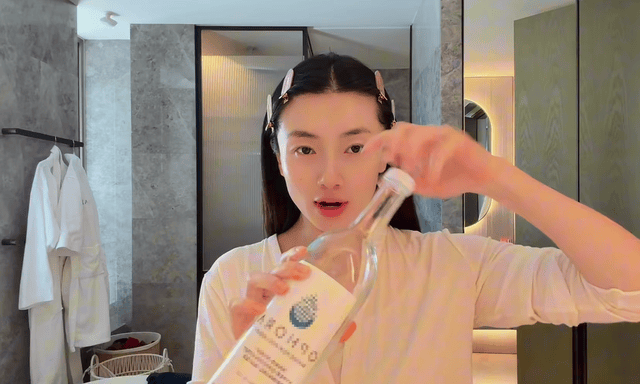 除了保养面部外,孕晚期的程晓玥不忘给身体补水,没一会儿她就喝了两大瓶矿泉水。据悉,程晓玥喝的这种品牌的矿泉水6瓶要700多元。
