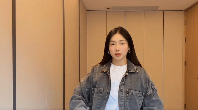 打扮完程晓玥出门和朋友们一起逛街。程晓玥还展示了逛街穿搭,作为孕晚期的妈妈,程晓玥身穿一件宽松版型(Oversize)的米白色大领毛衣,毛衣下摆拼接有黑色宽条纹,整体风格休闲慵懒;下身搭配一条浅蓝色的宽松阔腿牛仔裤,裤长及膝,与上衣形成协调的“上宽下宽”穿搭风格,营造出随性自在的街头感。