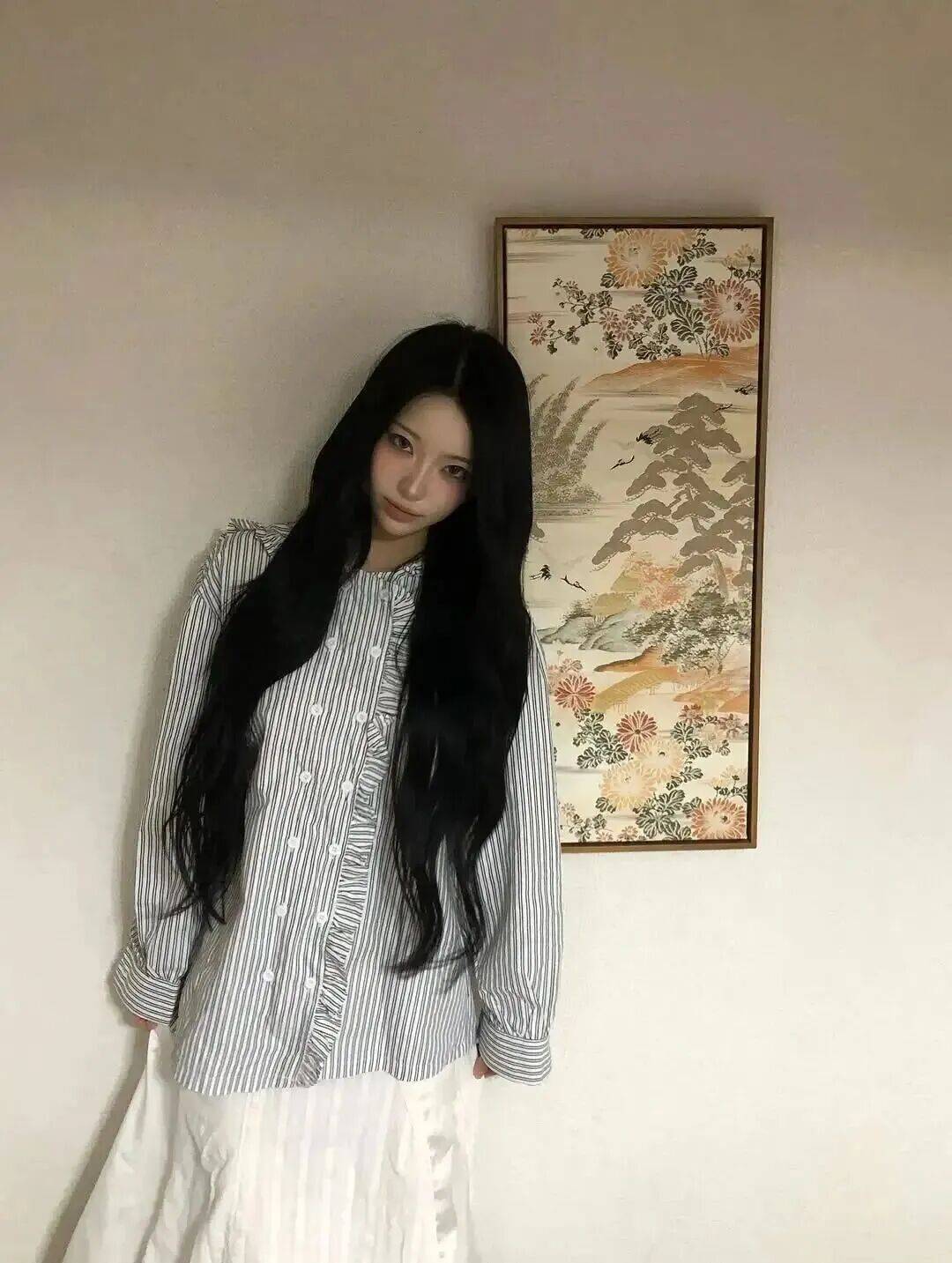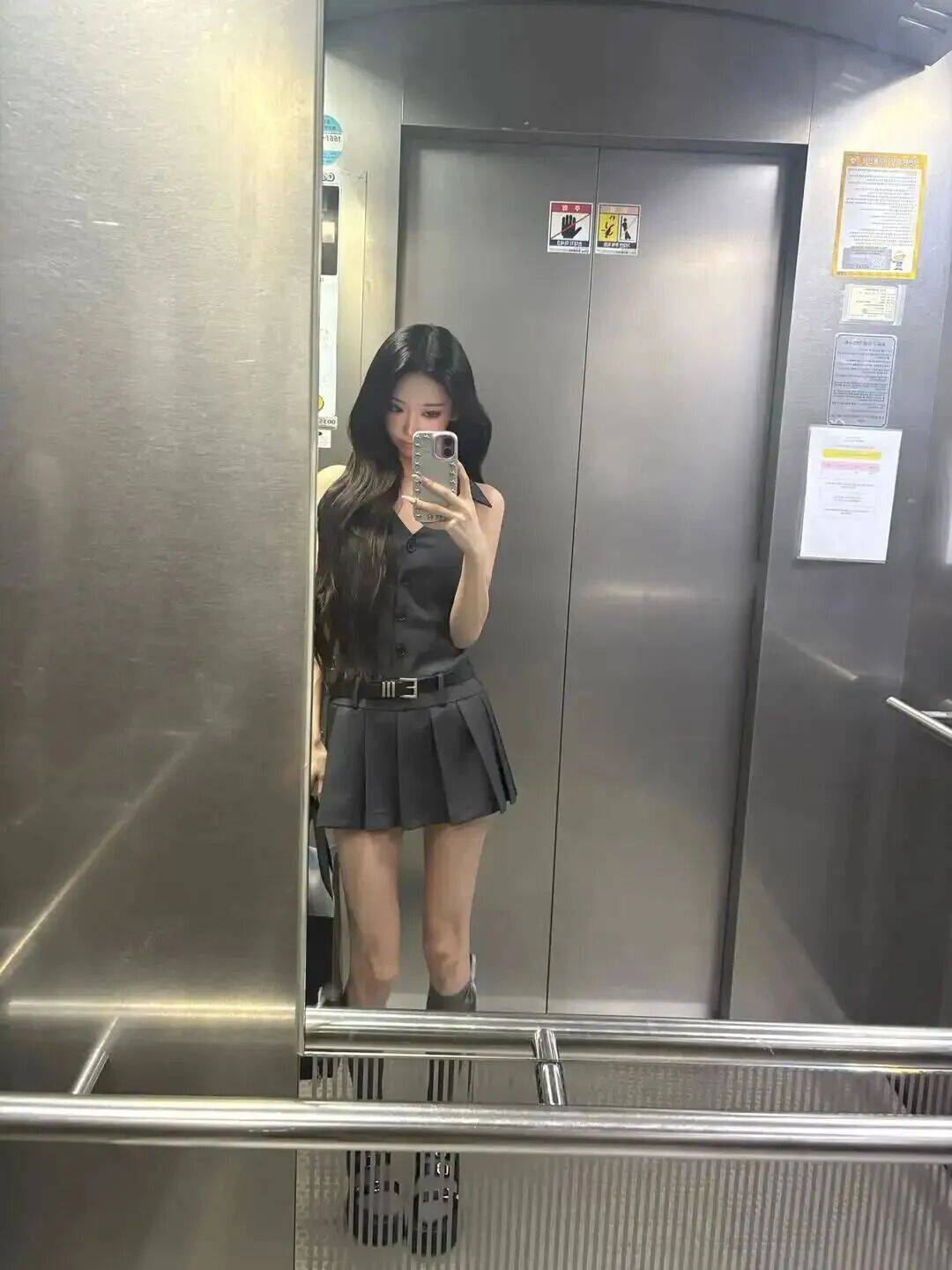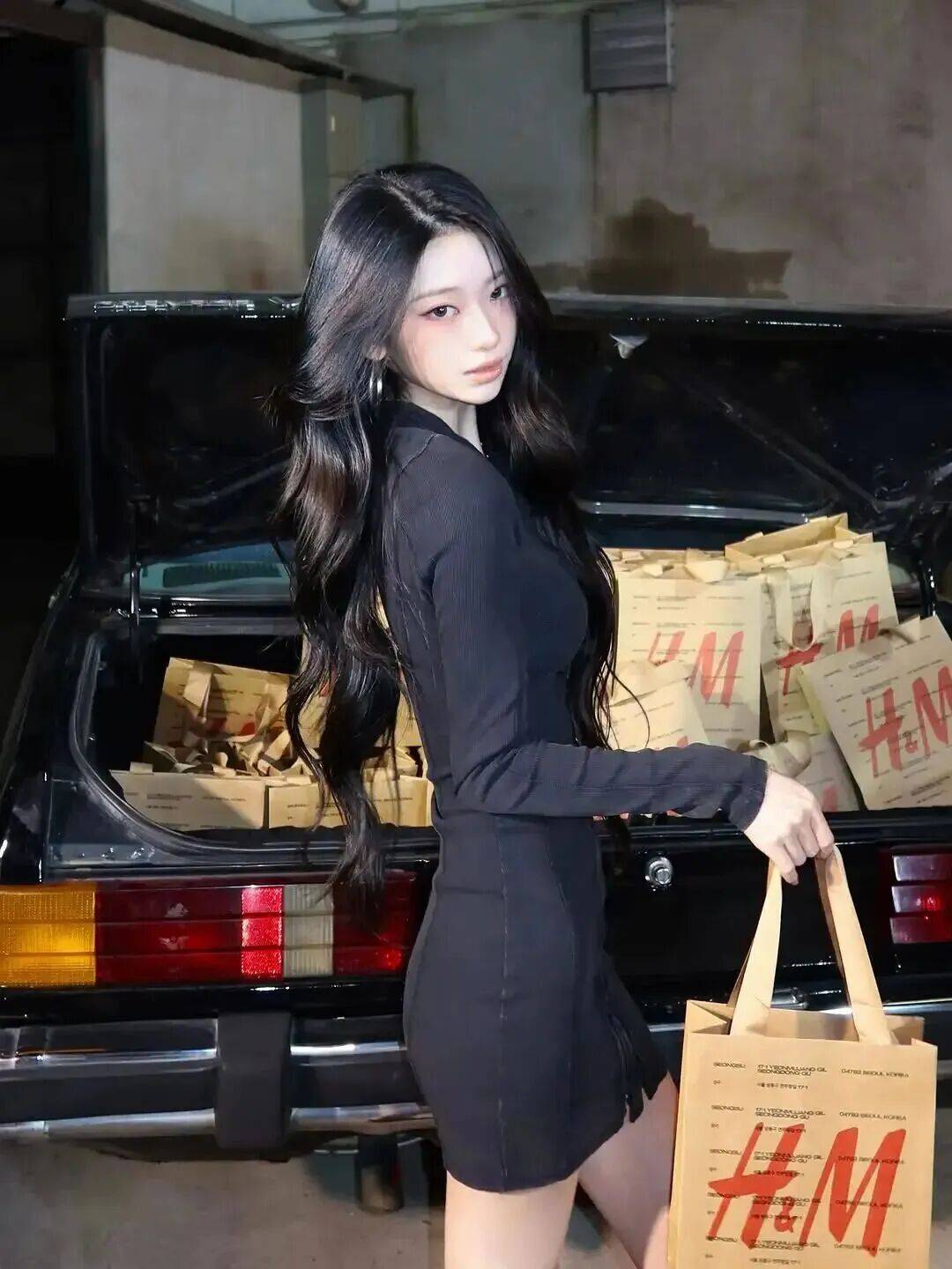 yoonseo 的穿搭核心是 “精准塑形,强化比例”。她偏爱 “上紧下松” 的黄金组合,短款修身针织衫紧贴腰线,凸显蚂蚁腰的纤细,搭配高腰微喇裤或伞裙,完美勾勒蜜桃臀曲线,同时拉长腿部线条,打造 “腰细臀翘” 的视觉焦点。连衣裙则首选收腰伞摆款,利落的收腰设计锁定腰线,裙摆自然散开修饰胯部,让曲线更显流畅迷人。