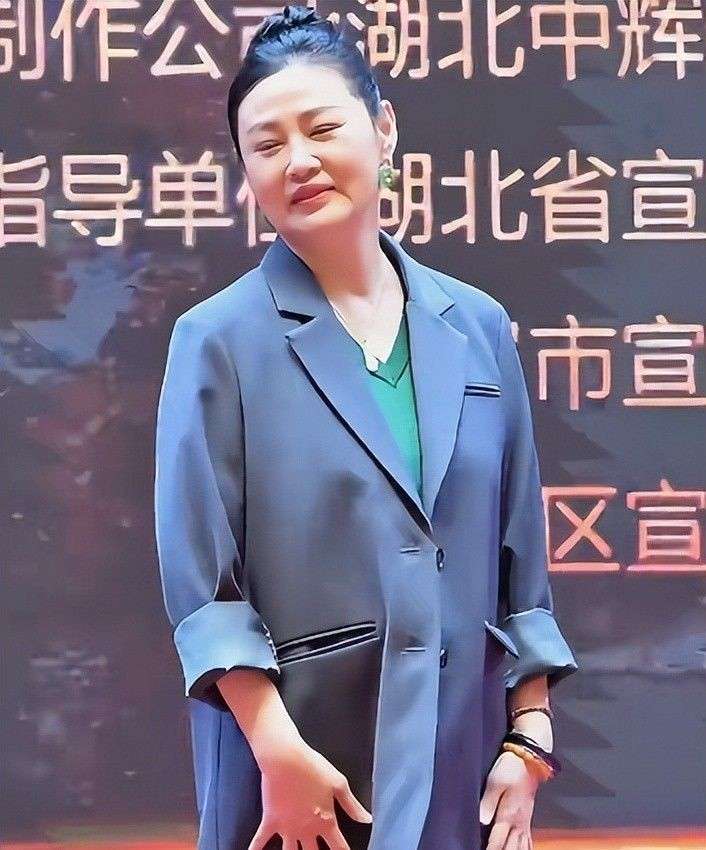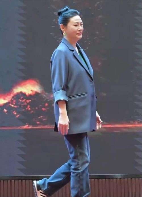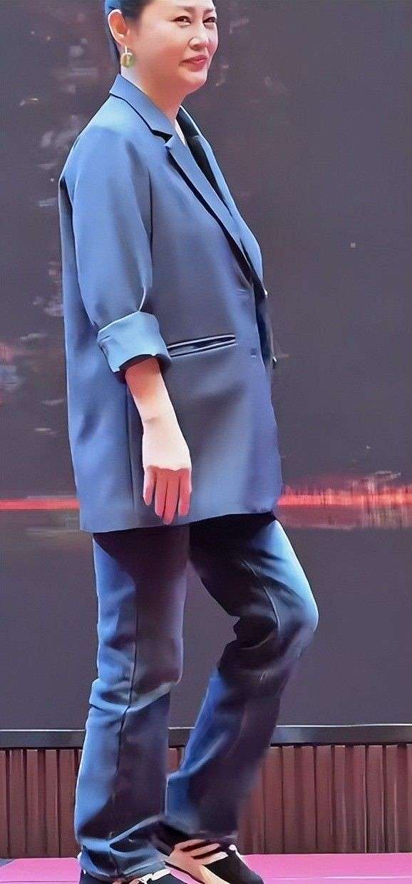 她的头发随意地束在脑后,露出光洁的额头。没有精心打理的发型,显得特别简单,恰恰暴露了她面部的疲态。尽管如此,活动现场的她依然豪爽大方,与身边的人交谈时,笑容满面,偶尔抬手整理头发的动作,仿佛还能看到那份昔日的风情。然而,细心的网友注意到,当她抬手时,西装的袖口滑了上去,露出粗壮的手臂线条,这与她曾经饰演潘金莲时的纤细形象对比鲜明。
