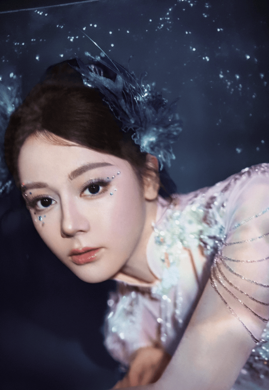 眼影亮片的反光更添了几分肿感。
