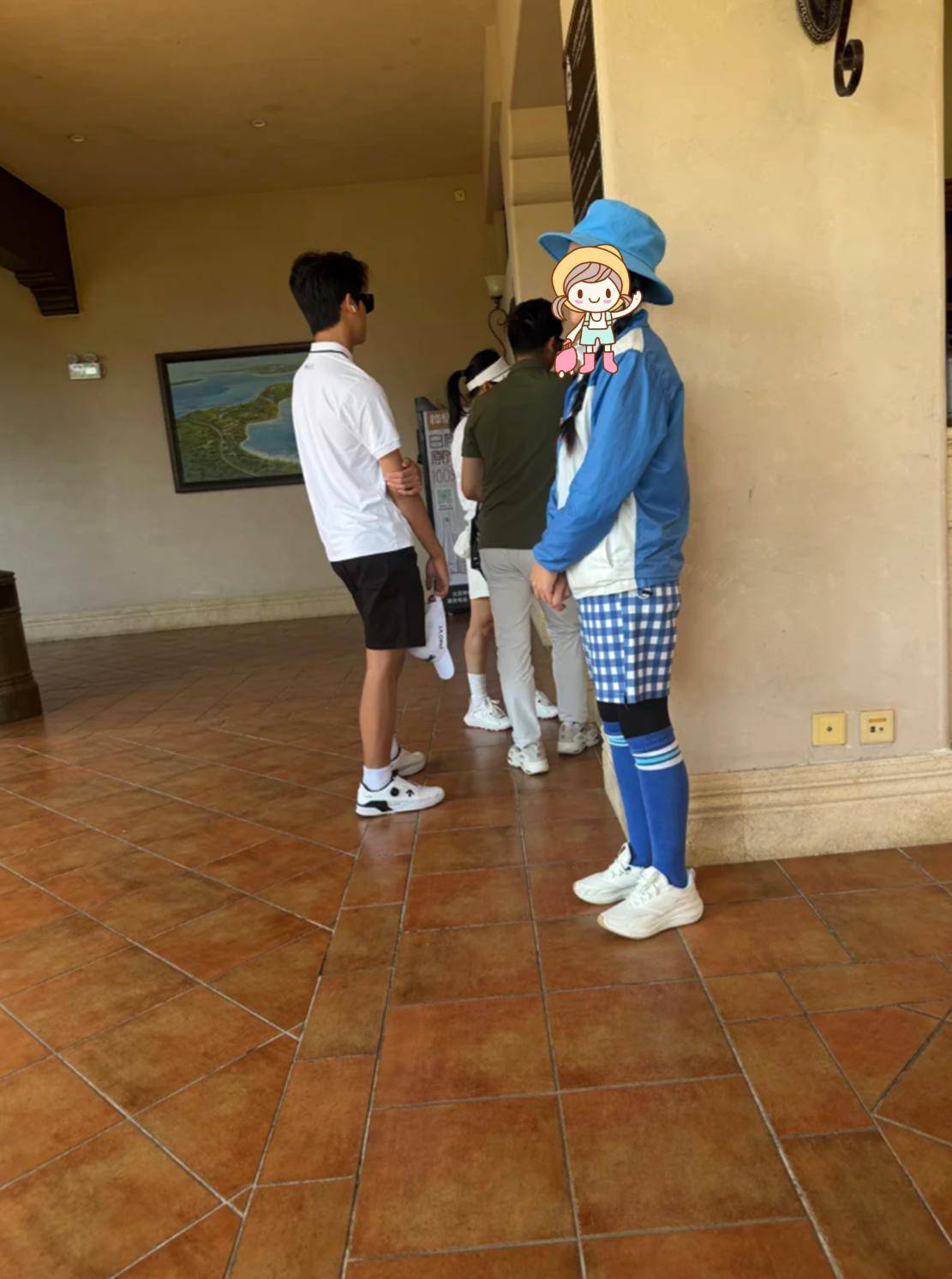 在这张偶遇照中,田亮和森碟站在靠近窗户的位置,似乎在低声讨论着什么,而亮仔则站在他们身后,显得格外引人注目。亮仔穿着一件简单的白色Polo衫,衣襟自然地垂落,恰到好处地勾勒出他挺拔的身材。下身搭配了一条黑色的运动短裤,既衬托出修长的腿部线条,又让人感受到一种舒适的活动性。更值得一提的是,14岁的亮仔早已长得比爸爸田亮还高,身高突破180cm,身形修长匀称,尤其是一双长腿,简直是所有镜头的焦点。加上他那副墨镜和耳朵上挂着的耳机,整个形象充满了青春与自信,散发着阳光般的气息,仿佛他就是这片海滩上最亮眼的一道风景线。