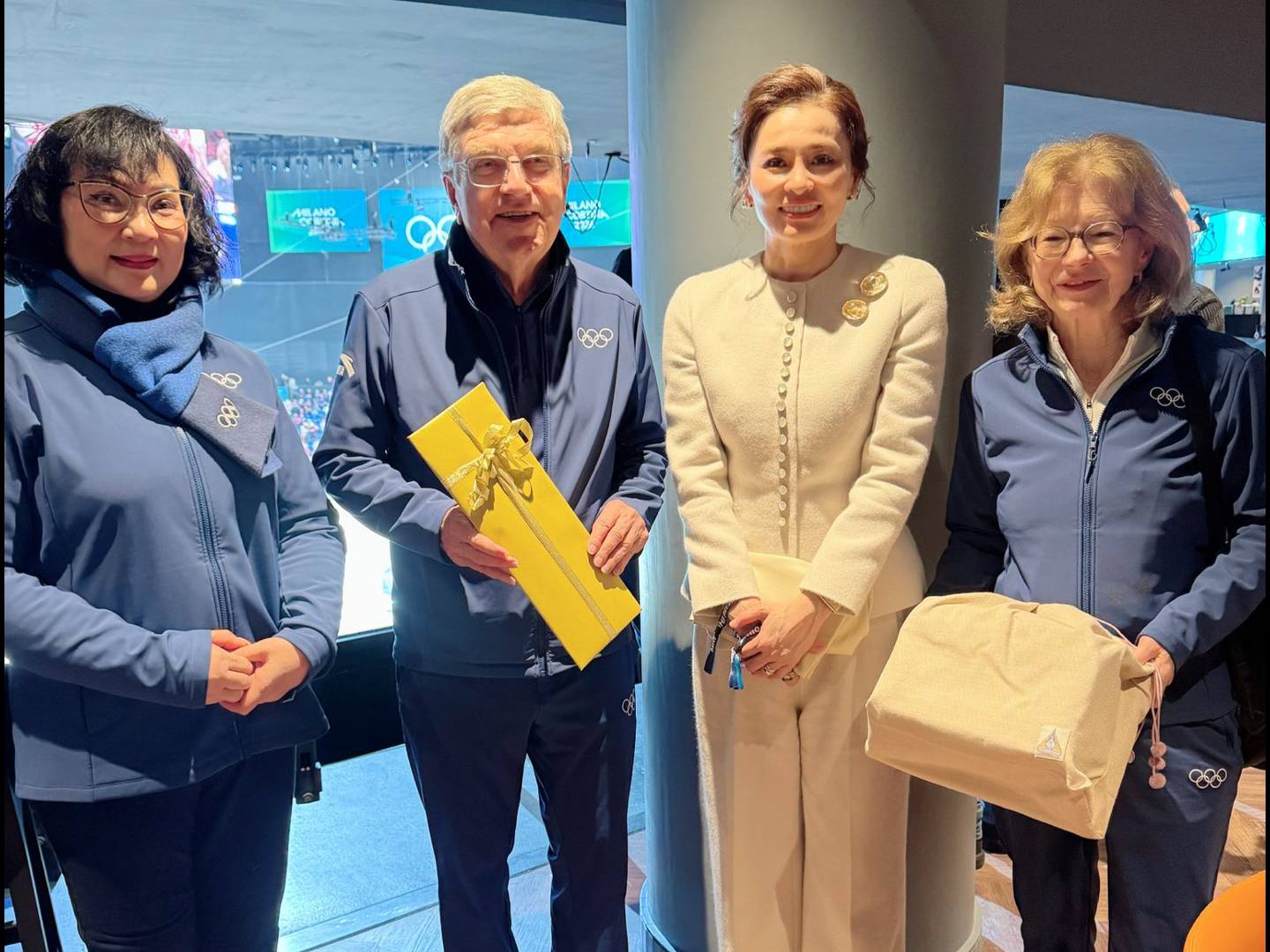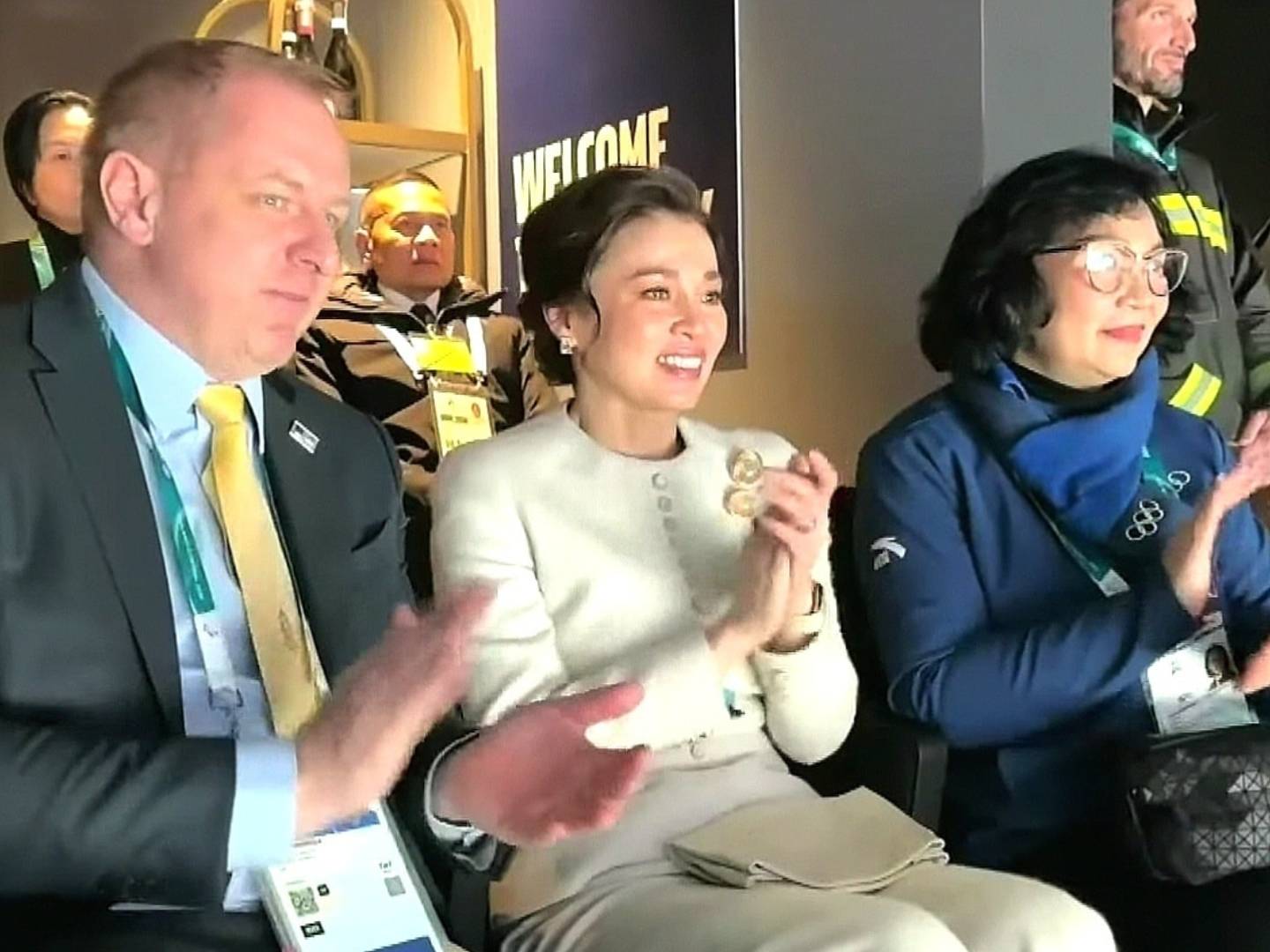 苏提达王后作为国际冰球联合会女子冰球大使,受联合会负责人邀请,在意大利米兰圣朱利亚冰球馆,身着优雅礼服、佩戴石英胸针,仪态万方地现身,观看了女子冰球金牌争夺战。