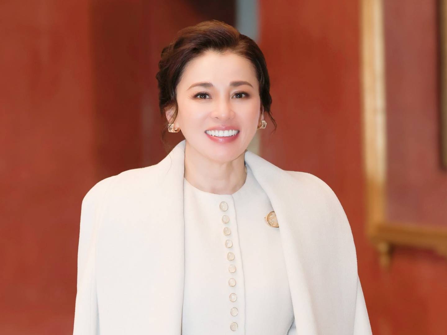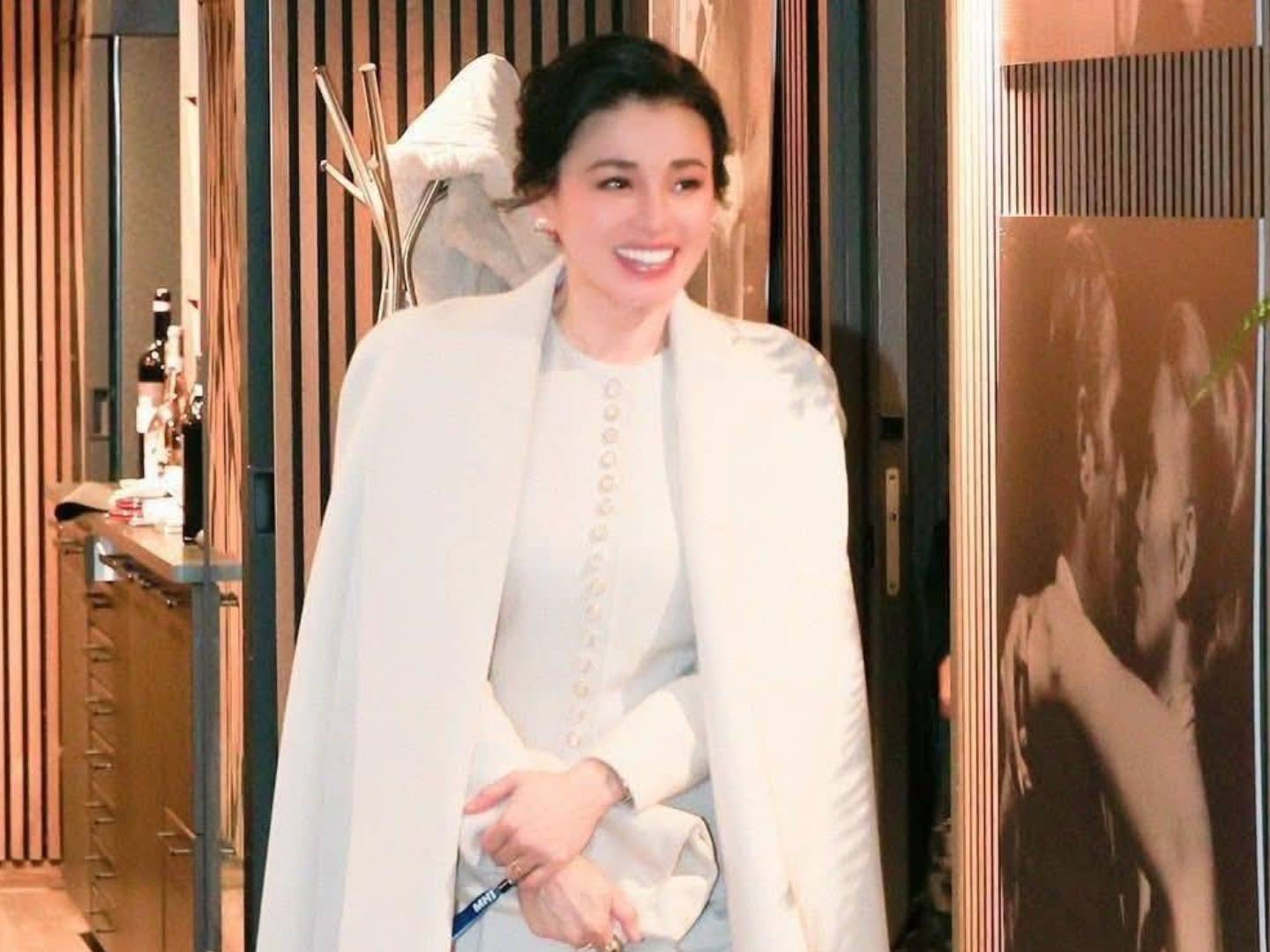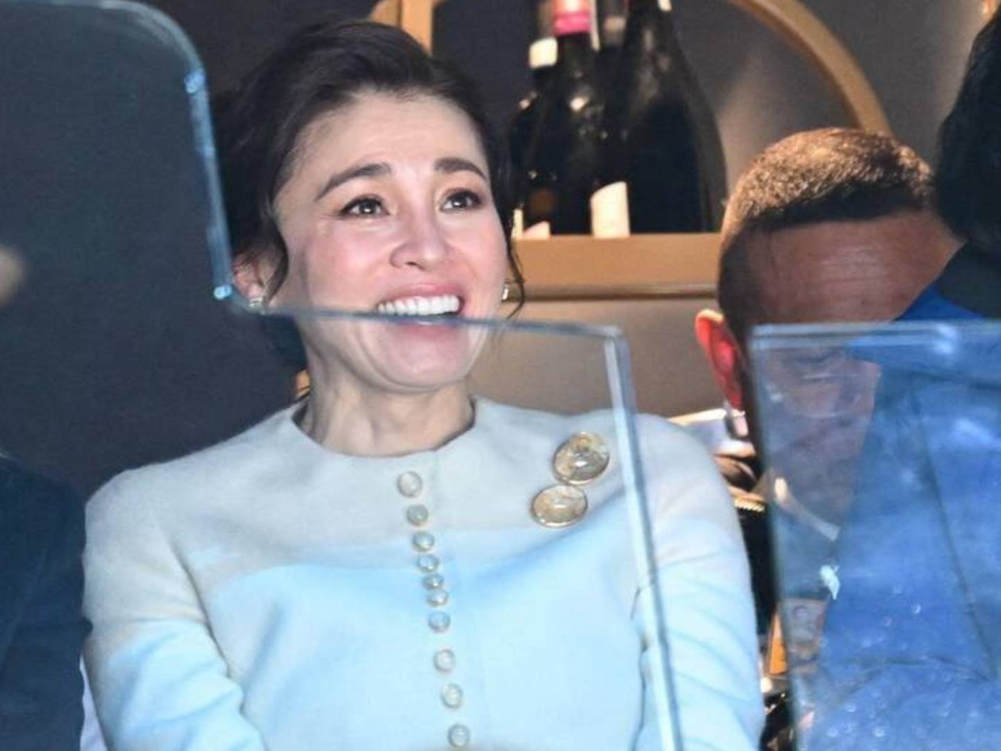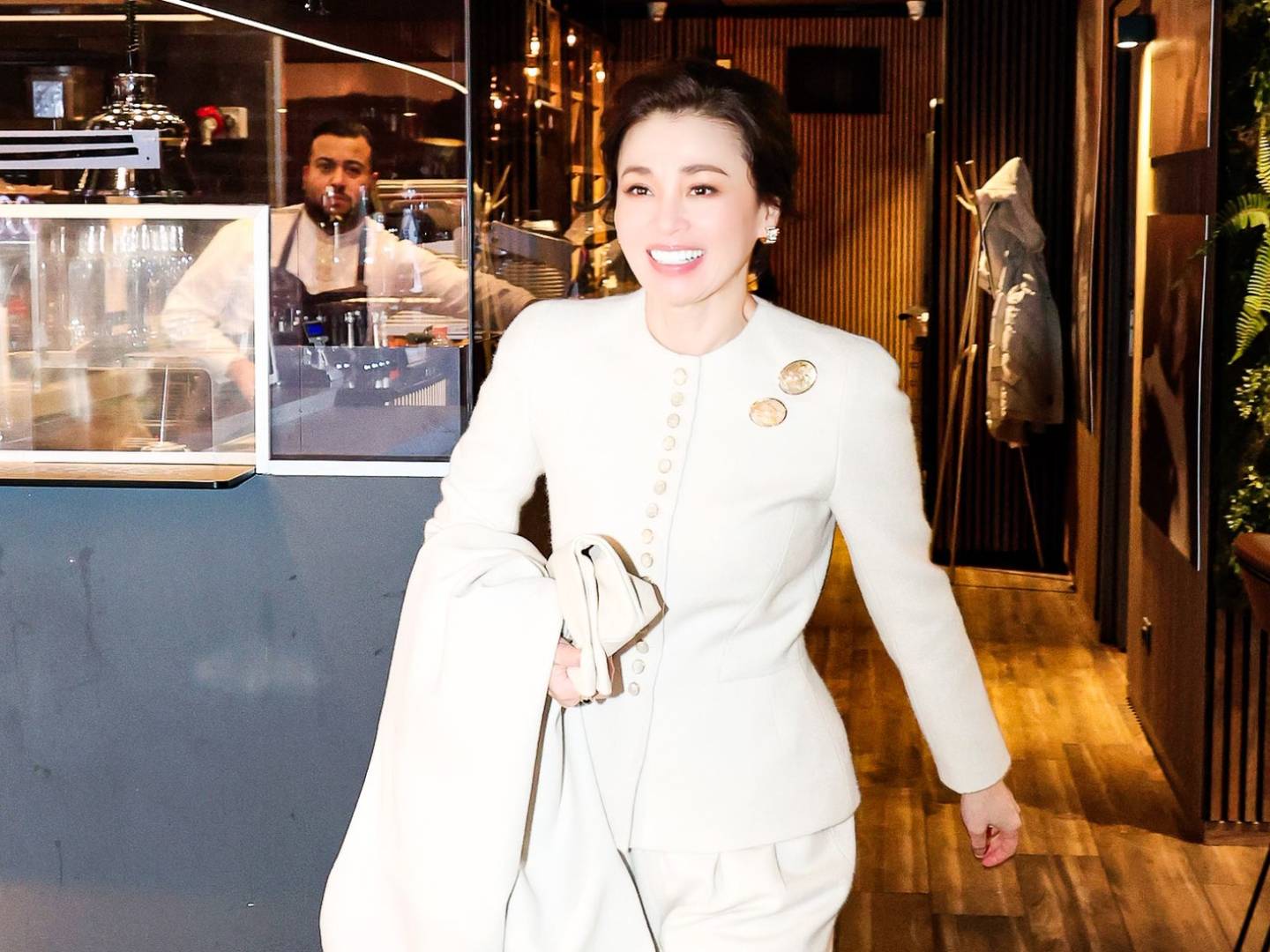 苏提达亲自看冬奥会,一袭白色套装美翻全场,现代造型美艳动人
