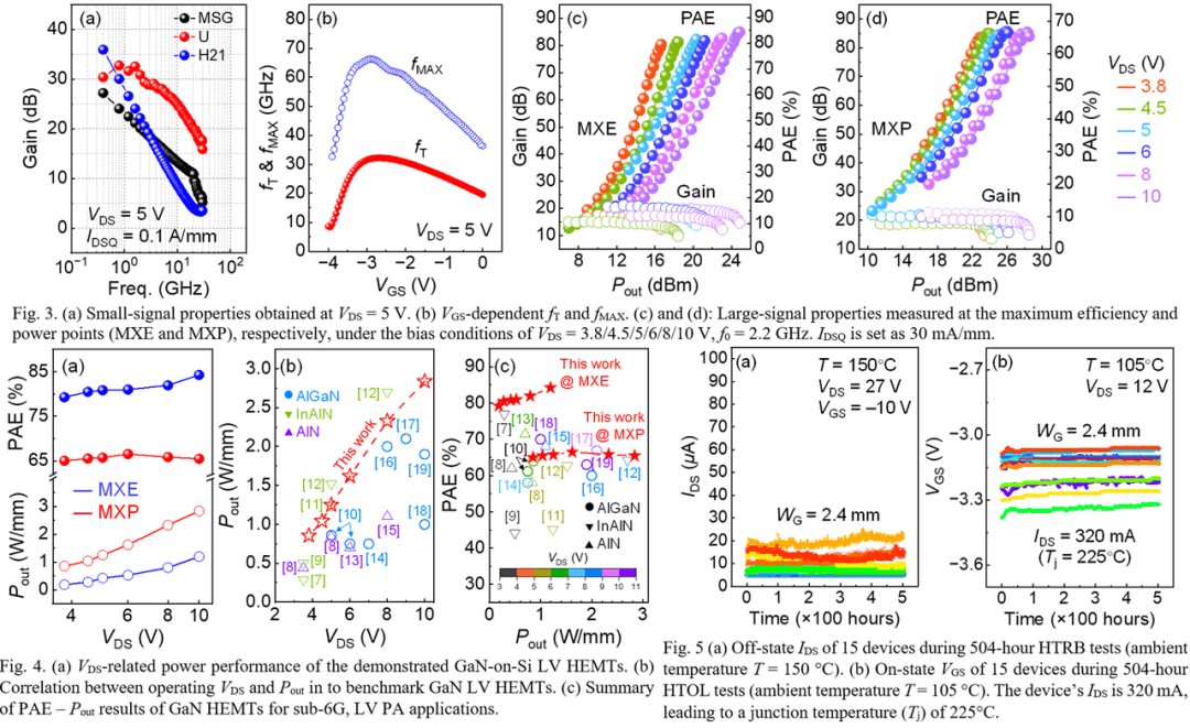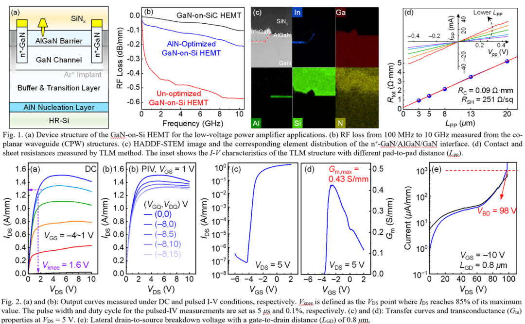 为攻克这一难题,研究团队聚焦于硅基氮化镓(GaN-on-Si)技术路线,通过电路设计与半导体工艺的协同创新,成功开发出面向手机低压应用场景的射频氮化镓高迁移率电子晶体管(GaN HEMT)技术,并率先在手机平台上完成了系统级性能验证,为6G时代终端射频架构的演进奠定了关键技术基础。