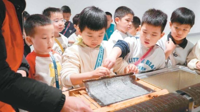 孩子们在长安书院动手体验造纸术。(受访单位供图)