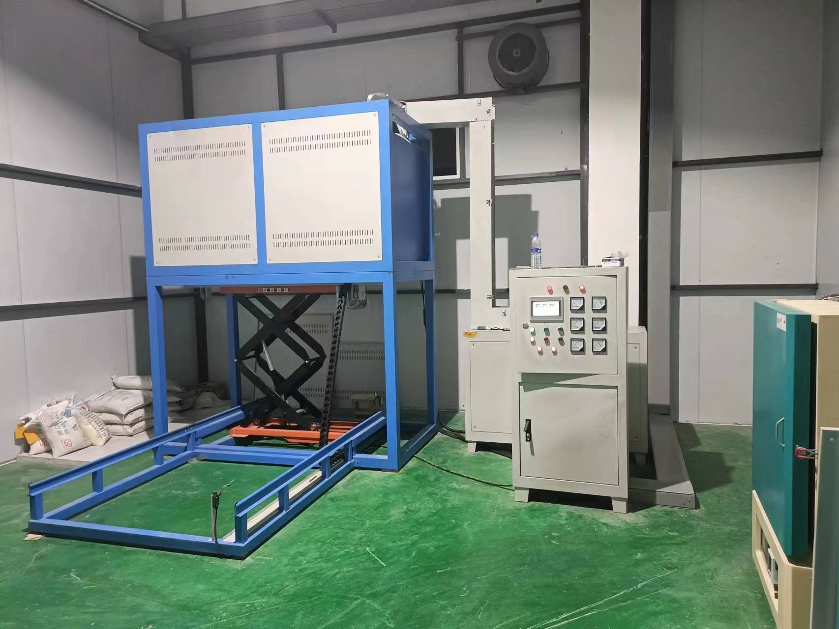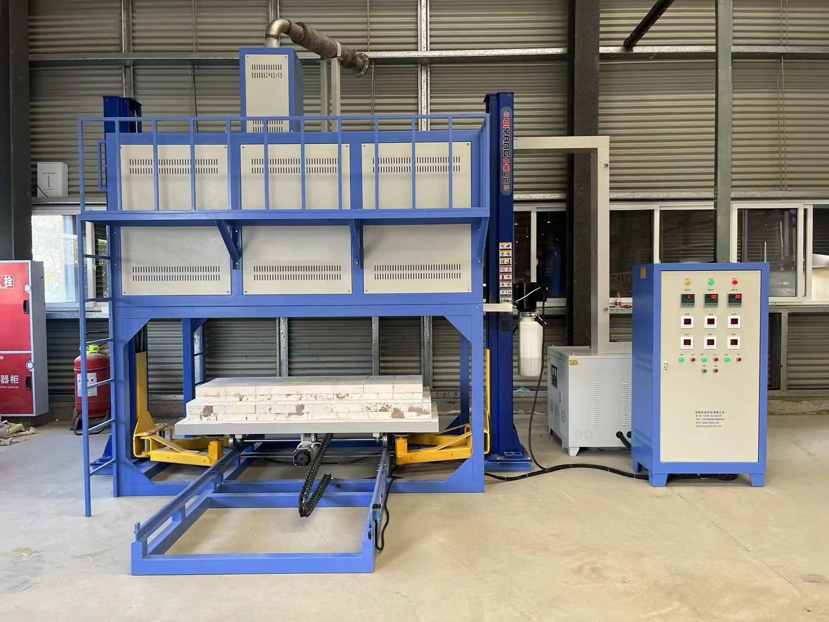 其结构设计合理,装料台有轨道可移出到指定位置进行装料卸料,工件堆放在工作台上,上下电动传动,炉门上下按钮开关电动控制,操作相对便捷。炉膛四面加热,能保证炉温均匀性非常好。炉衬采用轻质氧化铝纤维板拼装而成的炉体,炉底采用轻质保温砖和重质可承重耐火砖砌筑,既保证了保温效果,又具备一定的承重能力。