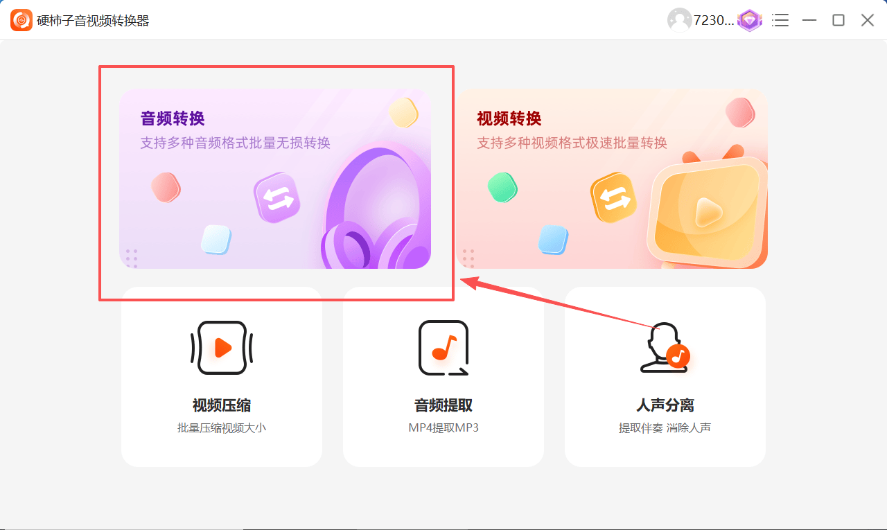 1、启动硬柿子音视频转换器软件后,选择主界面中的“音频转换”功能。