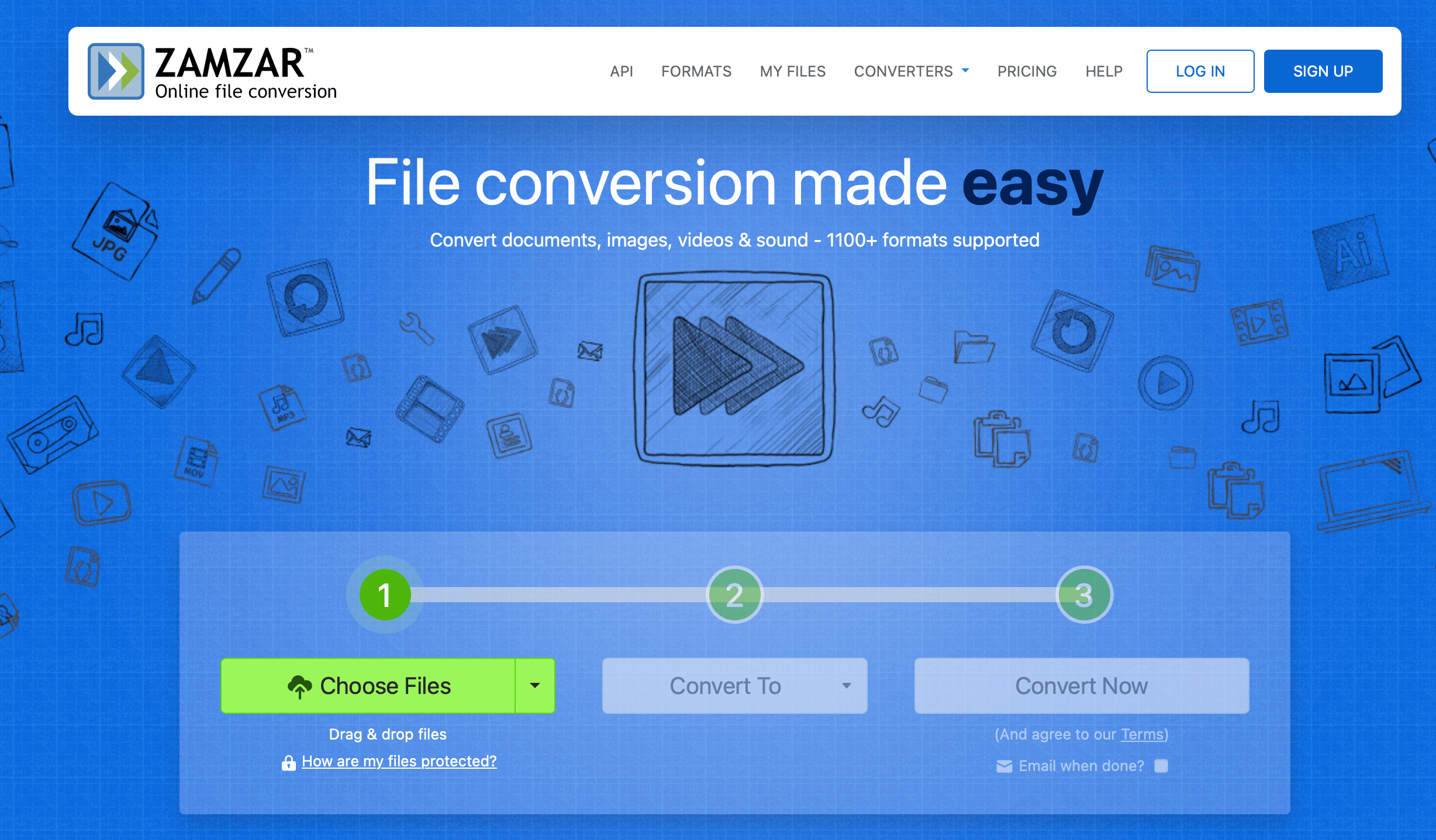Zamzar是一款老牌且口碑良好的在线转换服务,支持文档、图片、音频和视频等多种类型的格式转换。