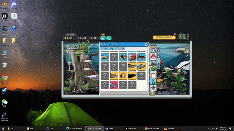 上班敲键盘敲到手腕发酸?开会开得头昏脑胀?来《桌面鱼老板:放置好时光》放松身心吧!这是一款主打放置休闲养成的桌面游戏,专为缓解工作疲惫而来 —— 只需轻轻一点,就能把精致鱼缸放在屏幕角落,还能自由拉伸调整大小,随时随地陪伴你。