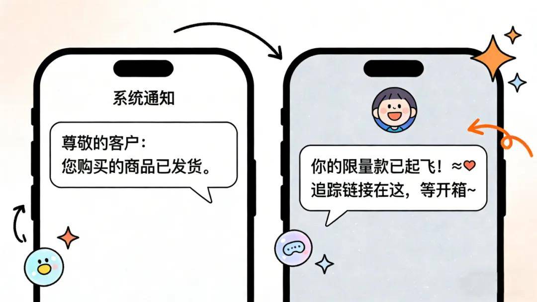 语言系统需要彻底口语化重构。想象你在给朋友发信息:“Hey! The vintage headphones you checked out last time have been restocked! 🔥 Your exclusive link: [链接] You’ll probably dig the new colorway.”这种自然的口语表达,配以恰当的表情符号,消除了品牌与消费者之间的无形屏障。