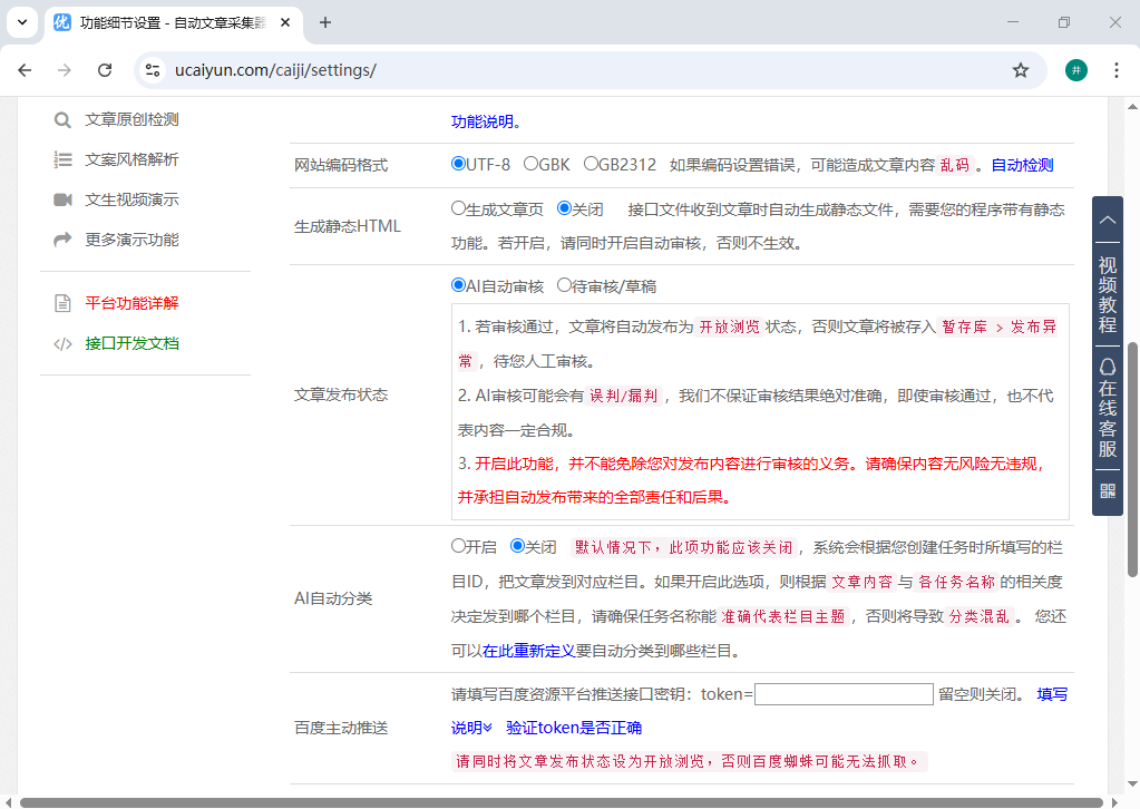 优采云那些细到变态的设置,什么单句段落格式、自动生成小标题、公司机构名称清理……