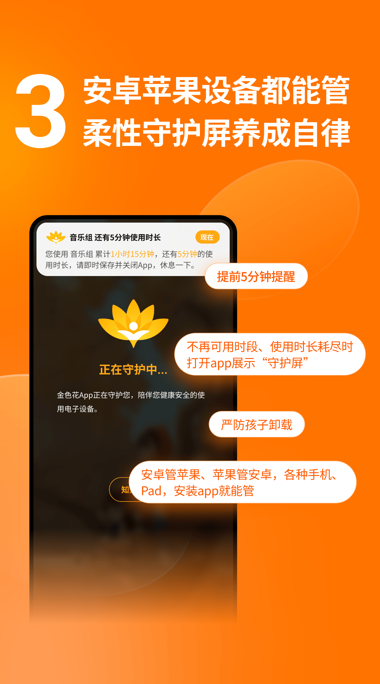 使用金色花守护也非常简单。家长只需在自己的手机上下载安装家长端应用,然后在孩子的手机上安装对应的子端应用,通过绑定账号即可开始使用。在家长端,按照系统提示进行时间规划、应用管理等设置,就能轻松实现对孩子手机使用的管控。