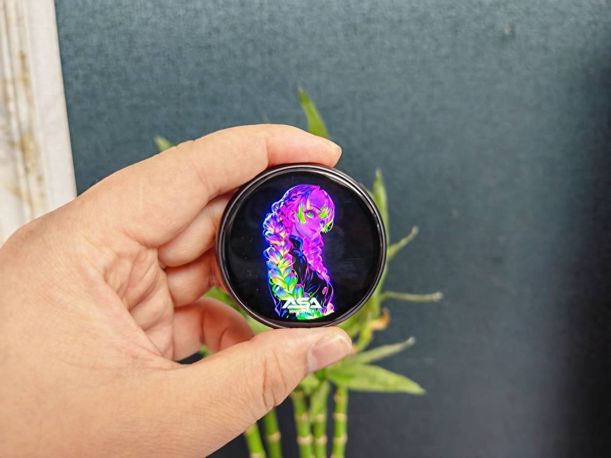 如果说外观是敲门砖,那么屏幕就是PIXBADGE真正的“灵魂”。官方宣称这是首款搭载AMOLED屏幕的电子吧唧,与普通TFT屏幕相比,AMOLED具备自发光的特性,无需背光模组,这让它在显示黑色时能够实现近乎纯粹的“息屏美学”,对比度极高。