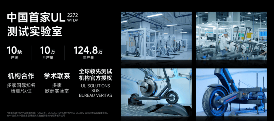 NAVEE掌握强大自研实力,累计申请专利 342 项,获得 TUV Rheinland / SGS / BV / UL 实验室资质,所有产品上市前需经过 140+项实验室测试,保证产品初始耐用值够高,并在欧洲市场经过成熟验证。