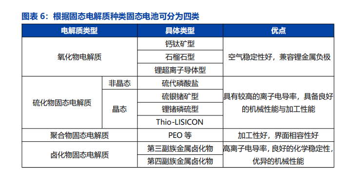 硫化物路线固态电池优势明显。不同类型的固态电解质各有特点,但是硫化物具有最高的离子电导率并且较为柔软,能够保证离子传输,并有效缓解界面问题。