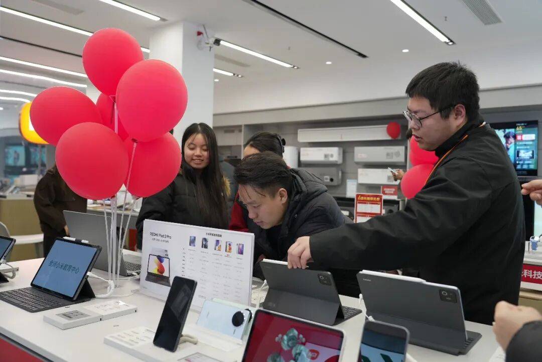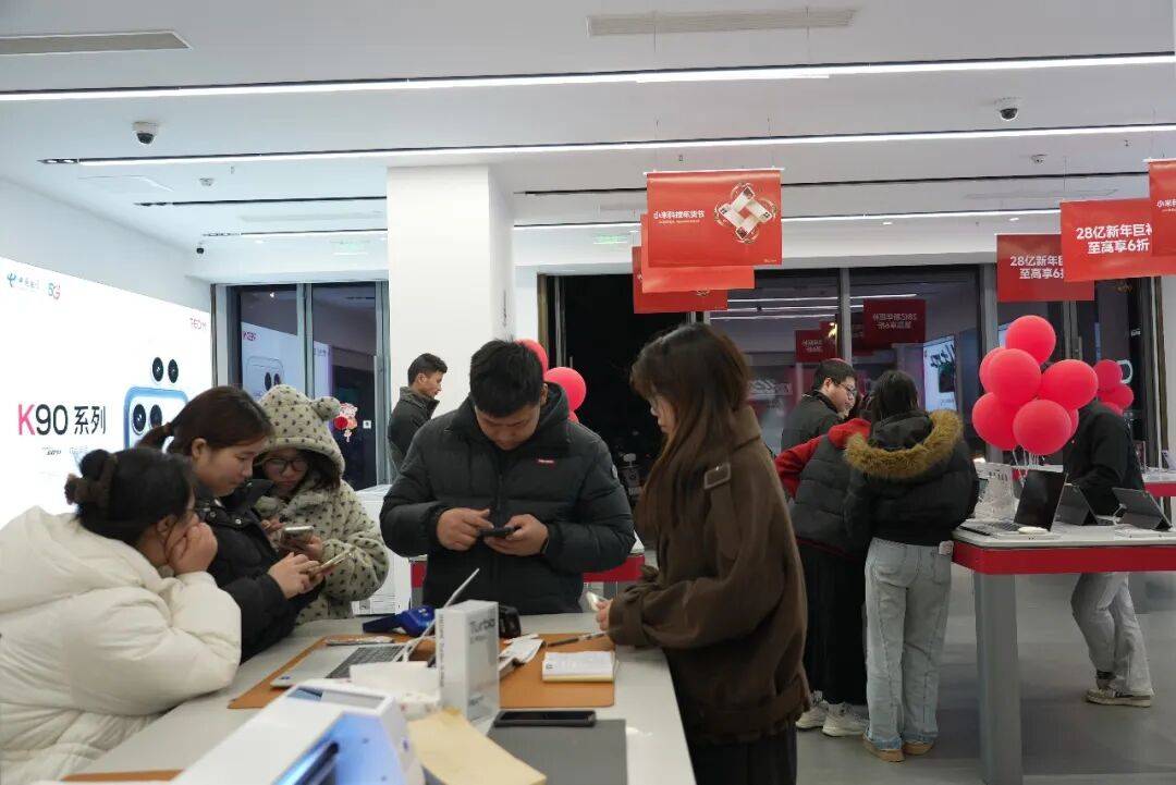 在城区核心商圈天街的几家门店内,摆满旗舰手机、轻薄本与智能设备,咨询、体验、下单的市民络绎不绝。不少商家推出以旧换新、分期免息、节日礼包等活动,叠加国家数码补贴政策,进一步点燃消费热情。市民夏丽趁着假期带上家人准备给电子产品来一次“大洗牌”,她说:“旧手机用了好几年,趁春节有补贴换一部旗舰机,给孩子也买个平板用来学习,算下来省了近500元,实惠又实用。”