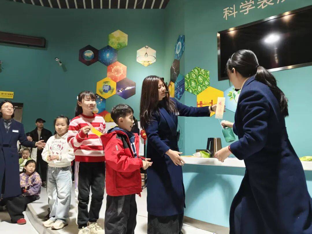 整场活动巧妙地将送祝福、贺新年等春节习俗与科学实验有机结合,营造出了浓厚的节日氛围。为了充分调动现场小朋友和家长的参与热情,活动特别设计了祝福盲盒、观众亲身体验等互动环节。小朋友们积极踊跃地参与其中,亲手操作实验器材,感受科学的魅力。家长们也纷纷加入,与孩子们一起探索科学的奥秘,共同度过了一段欢乐而难忘的时光。