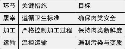 通过严格控制屠宰、加工及运输环节,运用现代技术保障温度和湿度,从而防止污染与变质。