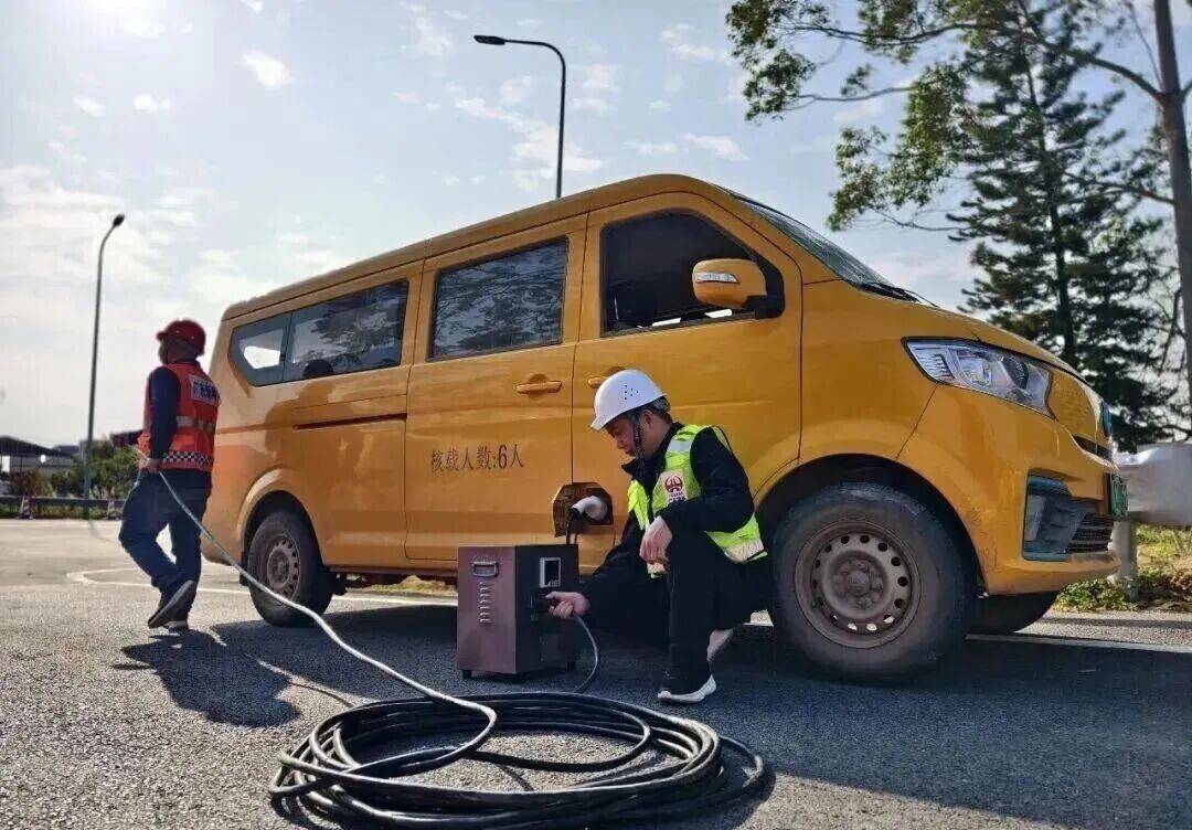 同时,广韶高速自主研发了配套的新能源智电仓,由专用外放电枪、逆变设备、快接电缆、多功能插线板及接地装置组合而成,与站点机房、岗亭总开关箱进行适配改装,打造出可随时调度、一键供电的“应急电源”,为春运保畅加上了一道“智能保险”。