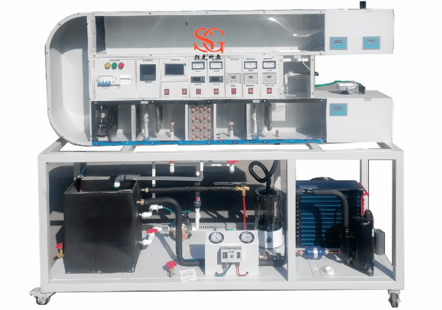 SG-514 循环式空调过程实验装置是我公司最新研制的空调实训设备,主要用于大学、职业院校空调制冷专业实验室现场实训实设备,设备可对空气进行加热,加湿,冷却和干燥等,可模拟直流空调、回风式空气调;循环空调空气调节过程的模拟实验,空气品质处理有,表冷器,淋水式两用。