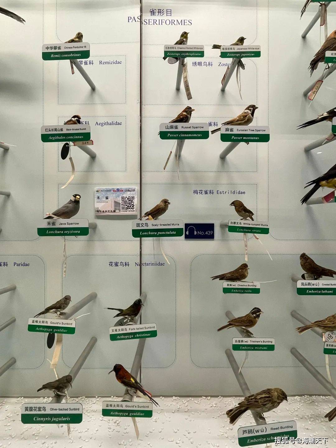 上图:雀形目(Passeriformes)是鸟类纲中最大、最多样化的一个目,包括了约一半以上的鸟类物种。燕、雀、莺、鹊、鸦、鸫、鹟、鸲都是本目的成员。雀形目的鸟类被称为雀类或雀形鸟,它们通常具有强健的脚部和爪子,适应于各种栖息地,从森林到草原、湿地、沙漠和城市等各种环境。雀形目鸟类分布于全球各大陆和岛屿,从极地到热带地区都有它们的足迹。这一目的鸟儿,普遍特征如:趾三前一后,均在一个平面上,趾间无蹼,后趾与中趾的长度几相等,后爪一般长于中趾;鸣管发达,鸣声复杂多变;孵卵多由雌鸟担任,雏鸟多为晚成雏,等等。摄影:Linda摄于国家动物博物馆