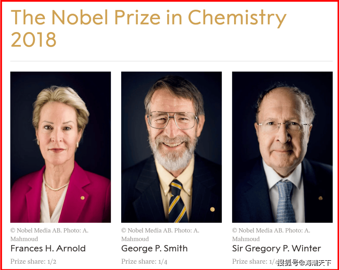 2018年诺贝尔化学奖花落上面三位科学家,他们通过巧妙地运用自然选择原理,对蛋白质进行定向进化,从而解决了人类面临的许多问题。这项突破性的研究成果被认为是为酶工程、抗体药物等领域带来了革命性的变革。图源:nobelprize.org
